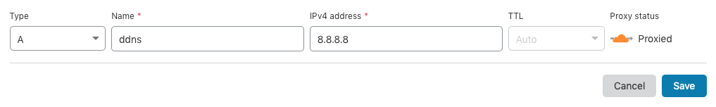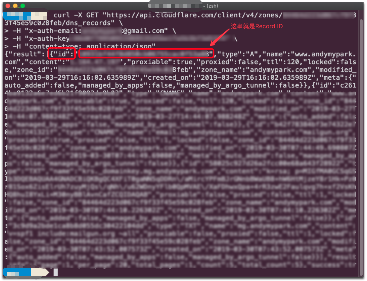 使用Cloudflare的API服务更新动态IP地址 By iok | 2019-09-16 0 Comment Cloudflare是一家CDN服务商,而且提供给一般用户的服务全部都是免费的,非常推荐使用! 近日使用的DDNS服务停止服务了,国内的DDNS服务商都要实名了,所以找了一下相关资料,可以利用CF的API进行模拟原来的DDNS,免费而且安全,更新速度更快。准备以下:1)申请一个域名。(收费或免费)2)注册CF帐号,并把域名的DNS托管到CF。(这里不介绍了,自行百度吧) 一、登录CF建立一条A记录,并定义动态域名的名称 注: IPV4 address 可以随意填写,因为API会自行更新你实时的IP地址,所以这里填8.8.8.8 二、下面几张图都是CF的界面,把几个API相关的key找到并记录下来 Zone ID 、 Global API Key 、 Record ID (需要使用前两者来获取)登录到CF,在托管的域名首页(Overview)右下角找到 Zone ID 记录下来 Get your API key 点击进入以下界面 通过验证身份后就会看到以下API KEY了,复制记录下来 要通过代码取得 Record ID找一台Linux的机子命令行状态上执行以下指令,注意{}中的参数按你自己的实际情况填写,然后把{}去除。curl -X GET "https://api.cloudflare.com/client/v4/zones/{ZONE_ID}/dns_records" \ -H "x-auth-email:{YOUR_EMAIL@gmail.com}" \ -H "x-auth-key:{YOUR_GLOBAL_API_KEY}" \ -H "content-type: application/json" 注:每条DNS记录对应的Record ID不同,所以更换域名后需要重新获取该ID。 三、编写脚本重新CF的DNS记录 以下是脚本内容,存放路径随意,这里脚本命名为cf_flashdns.sh,可以使用cron定时执行该脚本。【按实际情况修改红字的参数即可】#!/bin/sh # 將{ }替換為自己的資料 # GET Recore ID #curl -x get "https://api.cloudflare.com/client/v4/zones/{YOUR_ZONE_ID}/dns_records" \ #-h "x-auth-email:{YOUR_EMAIL@gmail.com}" \ #-h "x-auth-key:{YOUR_GLOBAL_API_KEY}" \ #-h "content-type: application/json" NEW_IP=`curl -s http://ipv4.icanhazip.com` CURRENT_IP=`cat /tmp/current_ip.txt` if [ "$NEW_IP" = "$CURRENT_IP" ] then echo "No Change in IP Adddress" else curl -X PUT "https://api.cloudflare.com/client/v4/zones/{YOUR_ZONE_ID}/dns_records/{YOUR_RECORD_ID}" \ -H "X-Auth-Email: {YOUR_EMAIL@gmail.com}" \ -H "X-Auth-Key: {YOUR_GLOBAL_API_KEY}" \ -H "Content-Type: application/json" \ --data '{"type":"A","name":"{YOUR-DDNS.exampel.com}","content":"'$NEW_IP'","ttl":120,"proxied":false}' > /dev/null echo $NEW_IP > /tmp/current_ip.txt fi 最后 chmod +x cf_flashdns.sh 加入到cron定时任务 [每5分钟]crontab -e0 */5 * * * /path/./cf_flashdns.sh登录到CF后台看看吧,现时刚才建立的A记录ddns的IP地址已经更新为你实时的公网IP地址了。