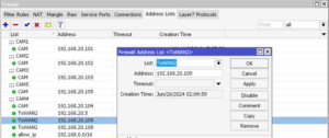 IP –> Firewall –> Address Lists 建立一个新的地址薄,日后需要走WAN2的内网地址直接加到这个地址簿里即可。