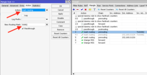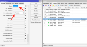 IP –> Firewall –> Mangle 新建一条规则,为刚才地址簿里的IP地址打上标记