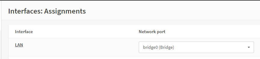 选择,对于 LAN 接口,选择之前创建的网桥并保存。