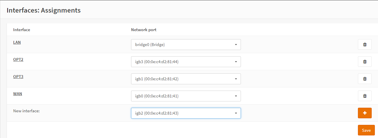 正常配置 OPNsense,使用单个 LAN 接口,确保其正常工作。在安装期间添加额外的 NIC 接口 (OPTx) 是个好主意。