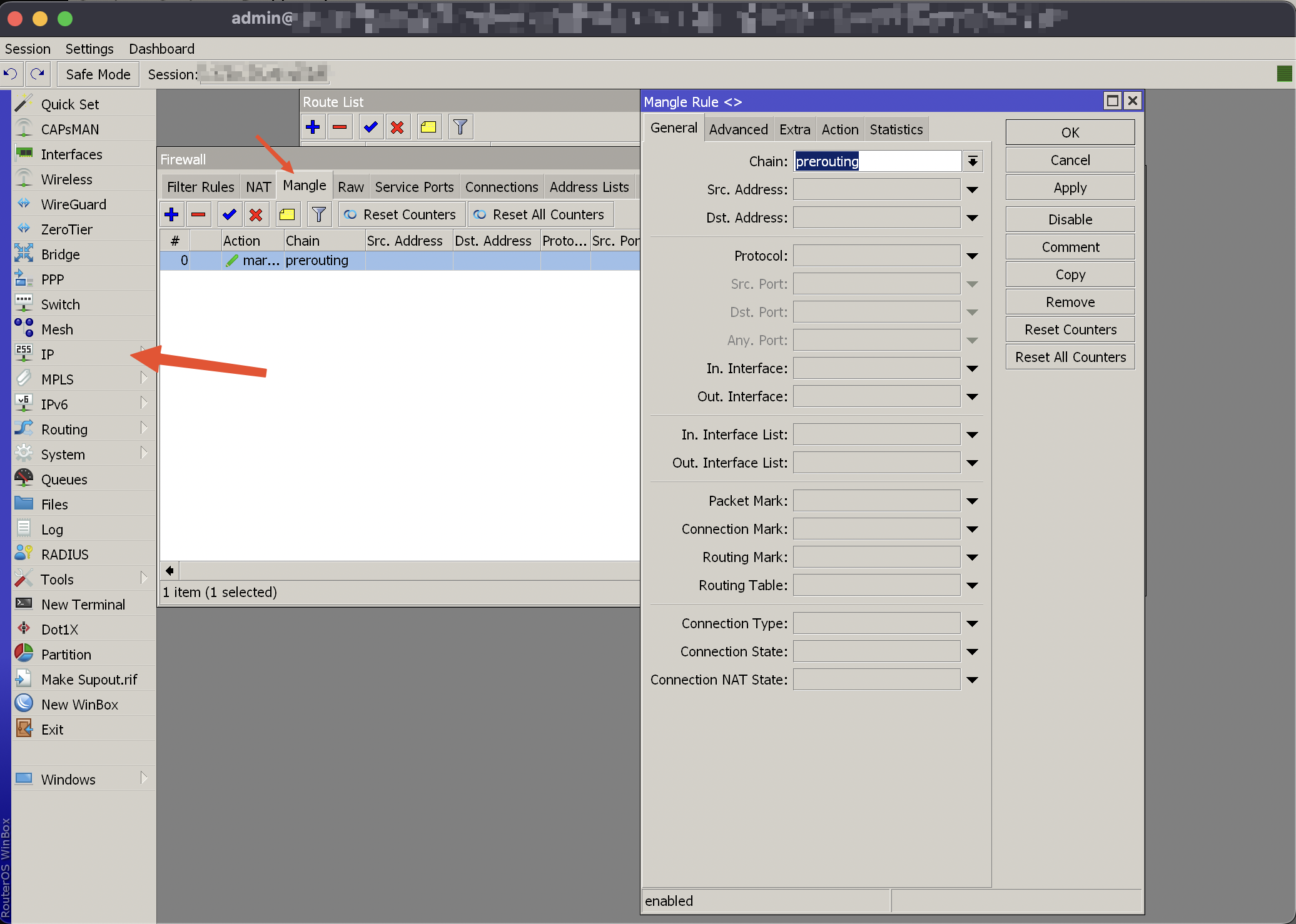 配置Mangle Rule,新建一条Chain,类型为prerouting: