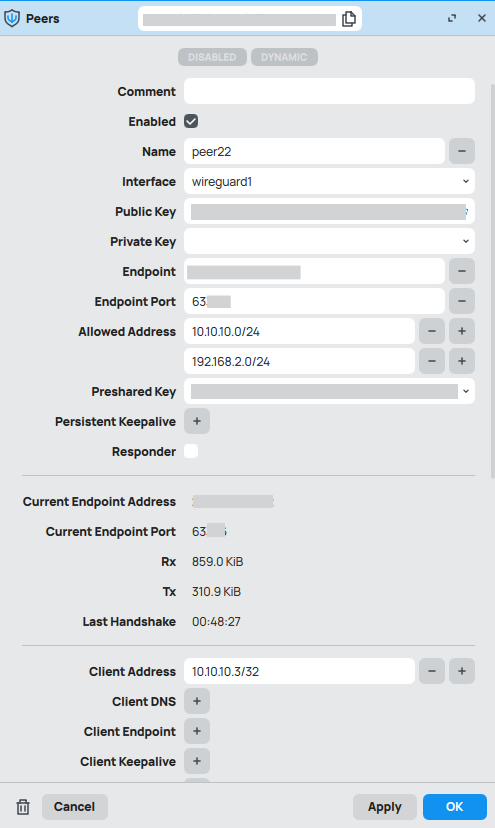 WireGuard -> Peers 新建